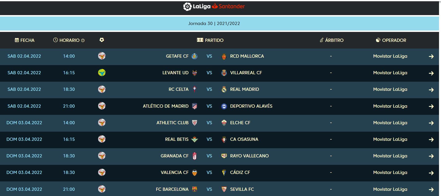 La liga ya ha dado a conocer el horario correspondiente a la jornada 30 del campeonato liguero en primera división frente al Athletic. El encuentro se disputará el domingo 3 de abril a las 14 de la tarde en el estadio de San Mamés.
