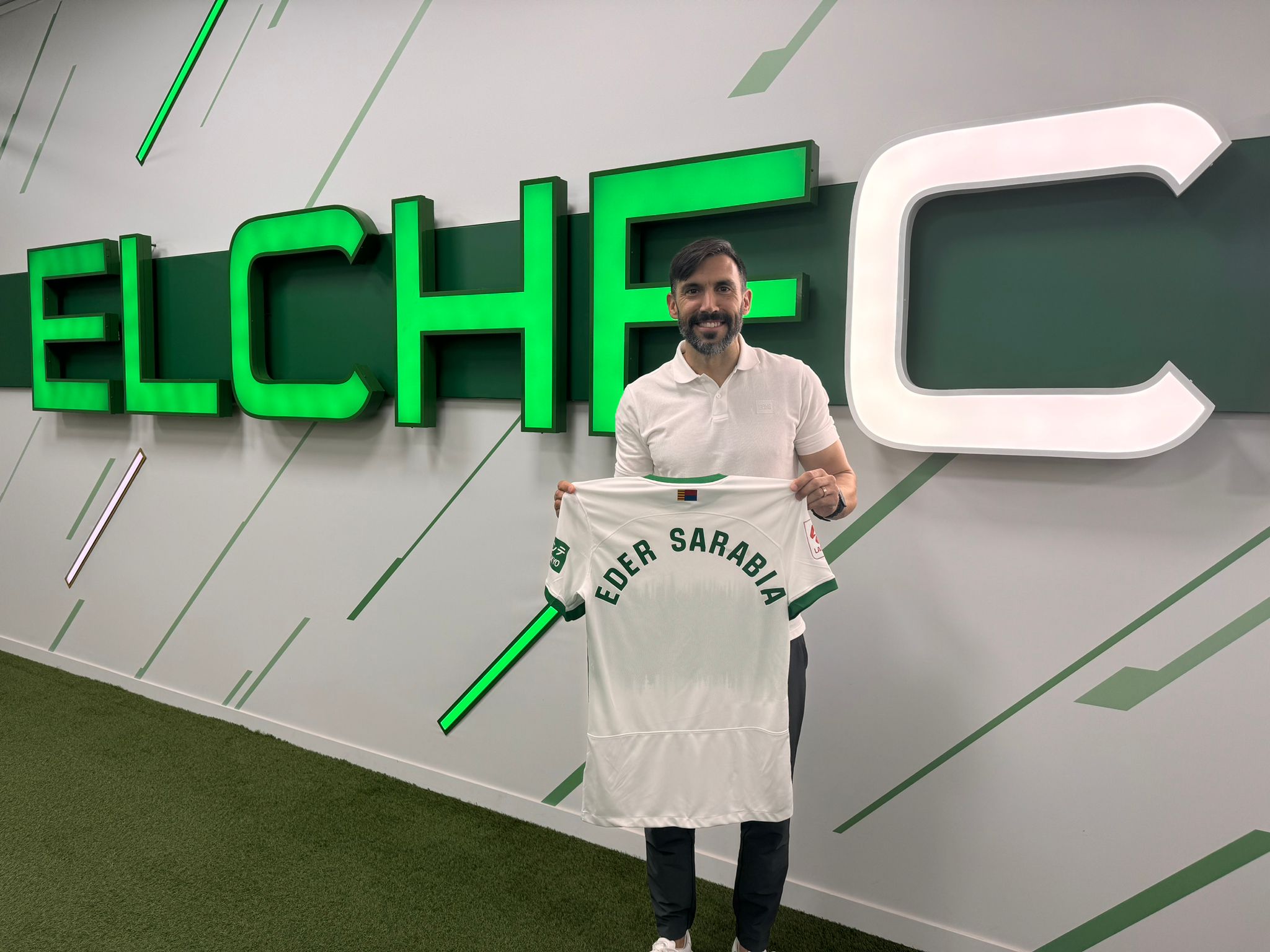 El Elche CF ha presentado hace unos instantes a su nuevo capitán general. Tras una etapa irregular con el argentino Sebastián Beccacece a los mandos, el club busca hacer borrón y cuenta nueva de cara a esta temporada. El bilbaíno Eder Sarabia llega con muchas ganas y energía de revitalizar al equipo y pelear por el ascenso. No quiso ni hacer mención a la palabra pero confirmó que ❝el proceso nos llevará donde queremos estar❞.